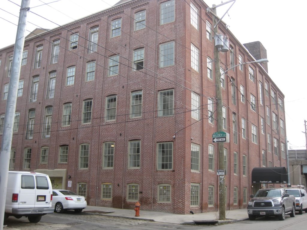 About a year and a half ago, we looked at two large vacant buildings on Frankford Avenue across the street from Barcade, and wondered when they might be redeveloped. After passing by the other day, we have good news indeed for one of them.