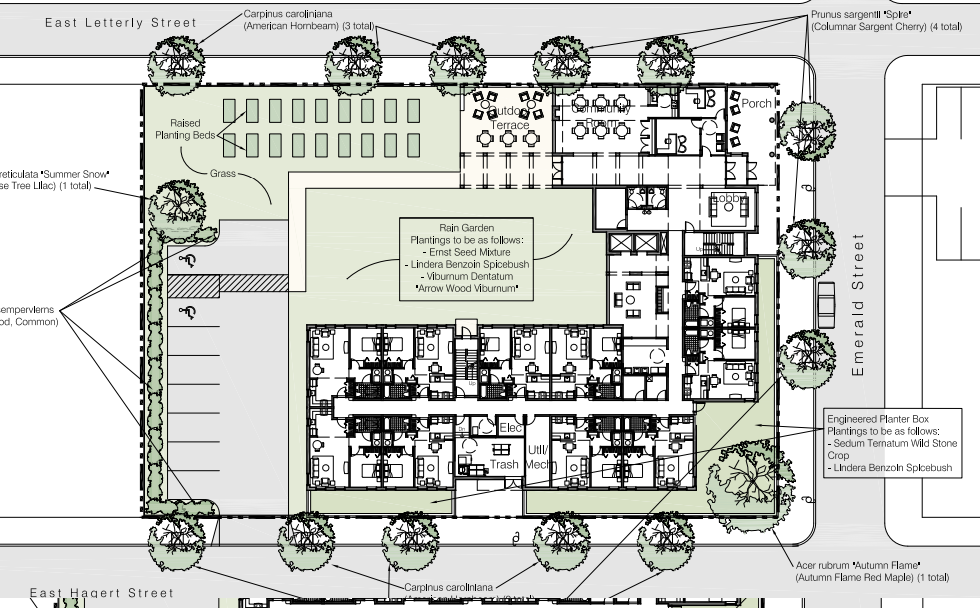 As you can see, the project is anything but an overbuild. It will only rise three stories, and will have a considerable amount of open space surrounding the property. Eight parking spots will be included, since most properties of this ilk historically have relatively few drivers as residents. In addition, a large interior courtyard will give residents a safe and clean outdoor space, while a gardening area will give them a place to indulge their green thumb.