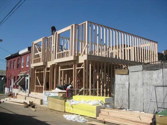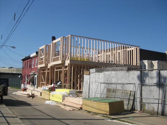 The other day, we spotted an ongoing development on a little, semi-hidden street that we had never noticed before. Two houses are going up at 554-6 E. Hewson St., and just to make it easier for non-Fishtowners, here’s a map.