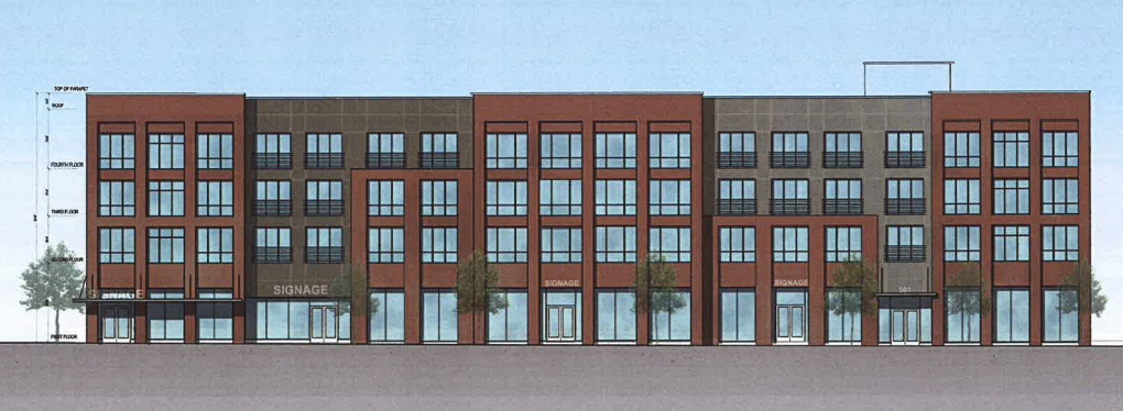 Tomorrow, developers will present plans to Fishtown Neighbors Association in a meeting that might turn contentious even though the proposed project is permitted by right. The developers are planning a mixed-use building that will rise four stories and will include 71 apartments, up to 4 retail spaces, and 51 parking spaces with all but 4 of those spaces located in an underground parking garage. The 26K sqft parcel is zoned CMX-2 and the developers are using a couple of zoning bonuses to allow the project to move forward by right. Because over 60% of the roof area will be covered by a green roof, the developers are getting a density bonus. And because one of the retail spaces will be reserved for a fresh foods market, the developers are getting a height bonus.