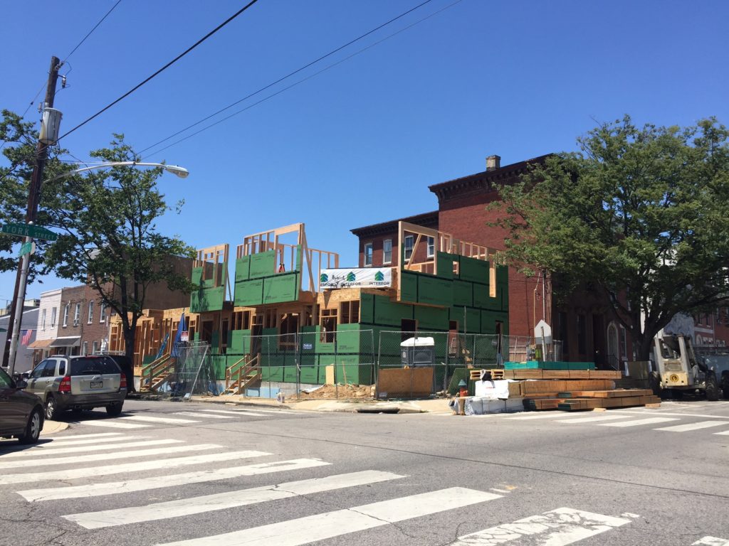 Across the street, 2424 Studios, with its a mix of office space, event space, and a diner, is a solely commercial building. But it's a different animal because it's an old warehouse that's been reused, not a new building. Looking at some of the development that's taking place nearby, we see almost exclusively residential projects.