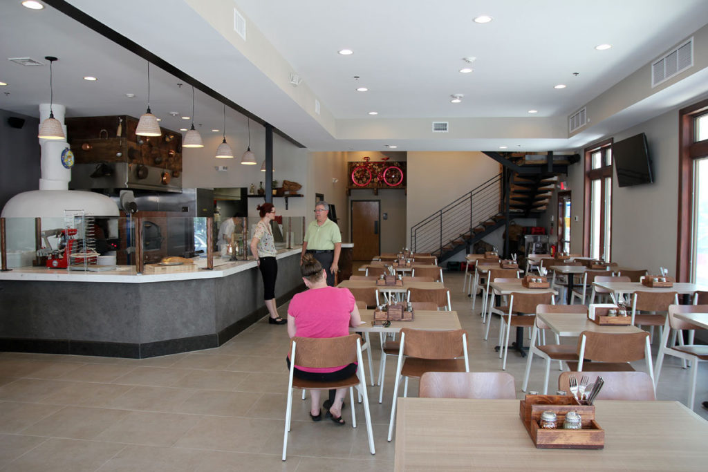 Medusa Pizza opened its doors about a month ago at the corner of E York & Gaul, adding to Fishtown's embarrassment of pizza riches. We first told you about this project almost three years ago, when we shared the news that a red warehouse that most recently housed a meat packer would be replaced by a new commercial building housing a 140-seat pizza restaurant. The project moved rather slowly, as framing was still ongoing when we visited in the fall of 2014. But the speed of construction doesn't matter anymore, as the business is now operating and pushing out pizzas on the regular.