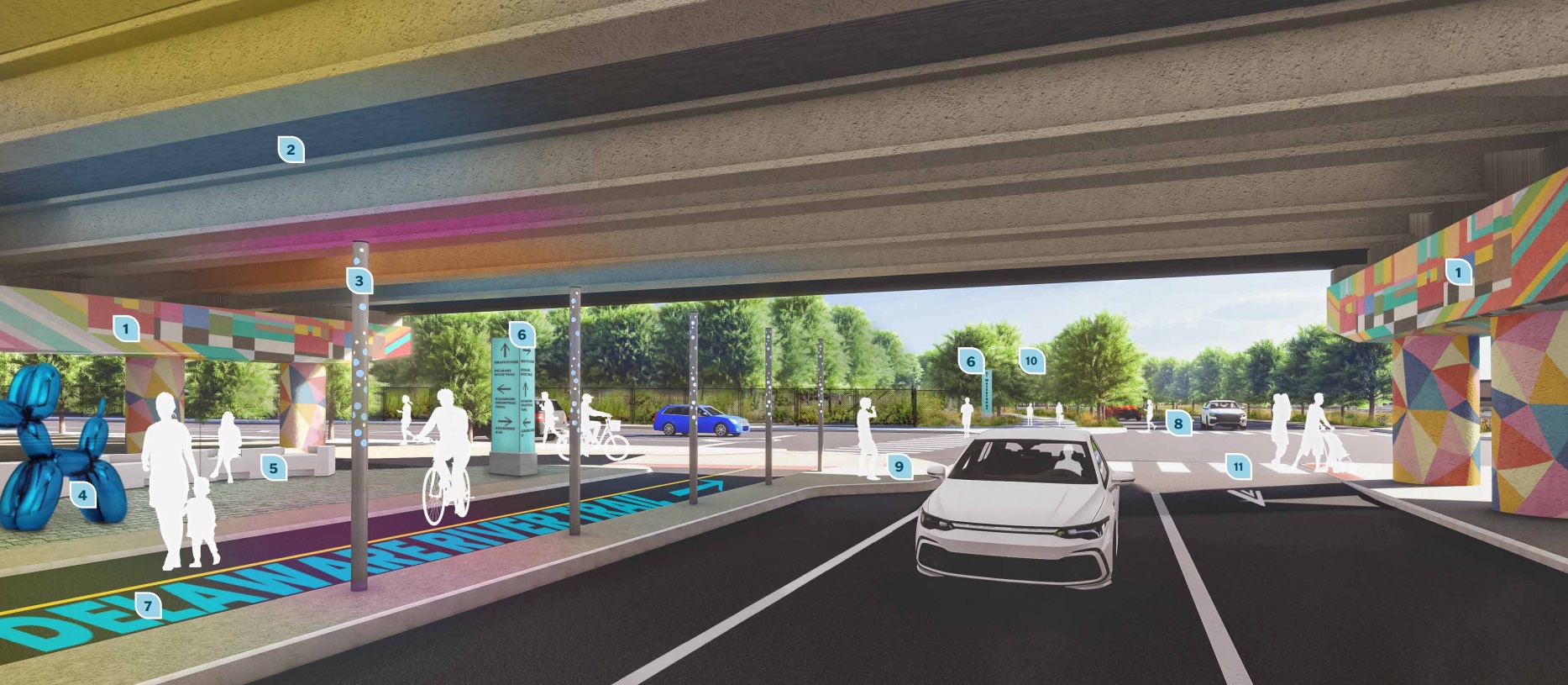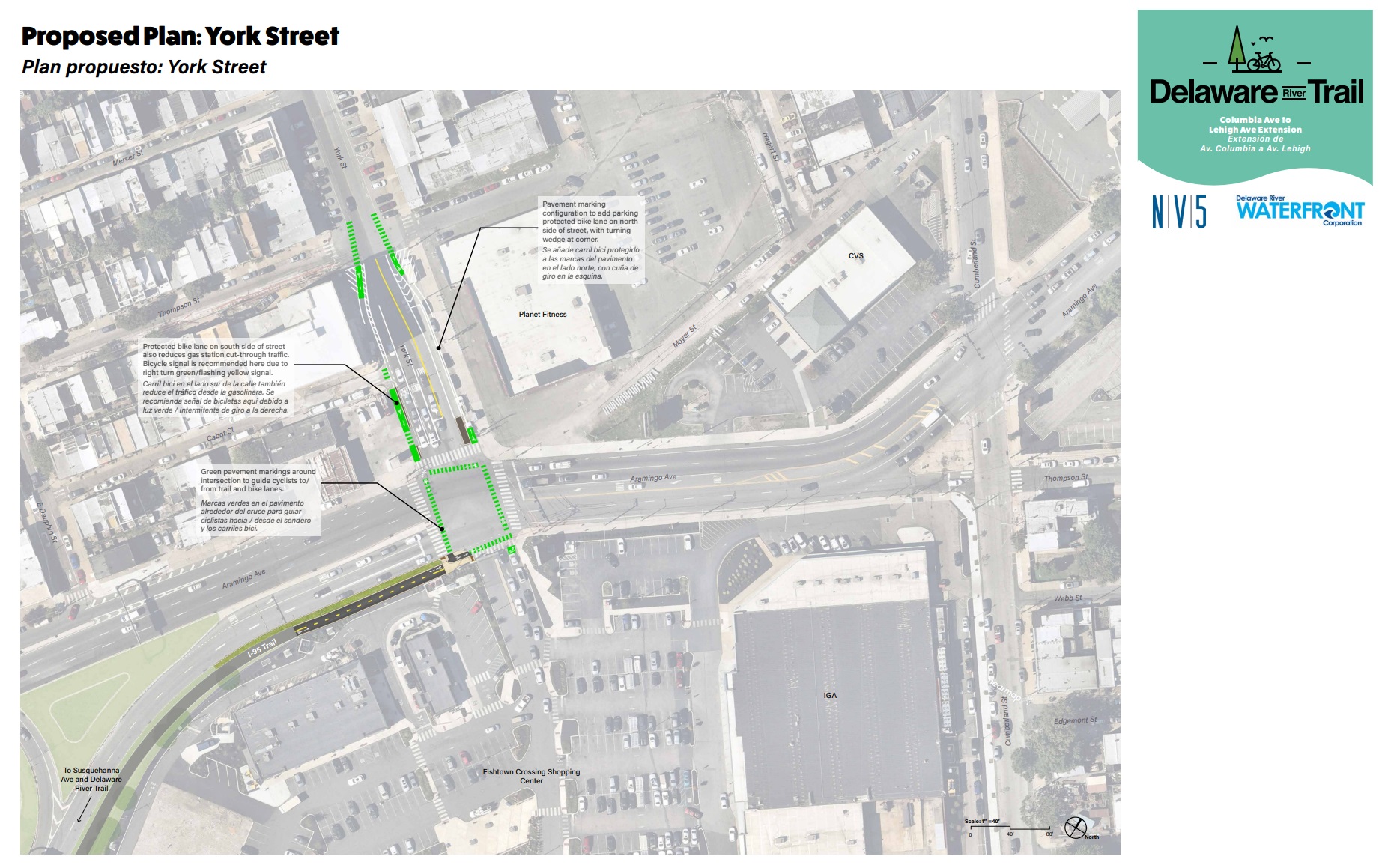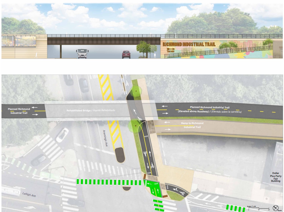 The intersection of Richmond & Lehigh also has plans in the works, as this area is a key node to connect with the already completed trails that sit under 95. The key feature to this improvement would be to get bicyclists off the road (despite the newly painted bike lanes on Lehigh Ave.) and up onto what could be the most exciting piece of all.