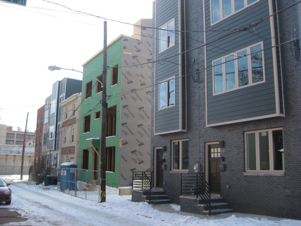 The homes on the corner are listed for just under $390K and just under $340K. The corner property has 4 bedrooms and 2.5 bathrooms, while the home that's one off the corner has 2 bedrooms and 2.5 bathrooms. Moving down the block, 1030 Earl St., which is currently under construction, is one of the wider homes you'll see out there. It's 28' wide, and will have about 2,500 sqft of interior room. It will have four bedrooms, three bathrooms, and was designed by KJO Architecture.