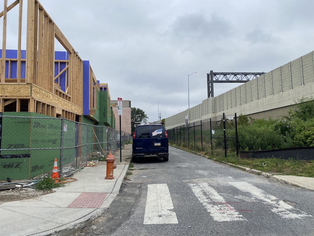 In order to give a view of the whole project in the rendering, the image pulls way back into I-95 and provides a perspective that may not be possible given the existence of the highway across the street. Also interesting, the rendering shows people (and dogs) using the green space across the street, which is currently a fenced-in berm adjacent to the highway. We couldn’t tell you whether this is an accurate portrayal of a future plan for this green space or whether it’s merely wishful thinking, but we’re certainly hopeful for the former. We don’t see why it couldn’t be converted to public green space, as we’ve seen along the highway in Queen Village or Pennsport. It would certainly be an added benefit, not only for the future residents of this development but for anyone else that lives nearby.