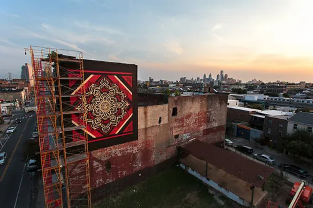 There’s a big empty lot at 1224 Frankford Ave. next to Frankford Hall which might be one step closer to being redeveloped this week, after the Civic Design Review committee recently gave their blessing to a less than straightforward proposal. Considering we’ve been wondering about this site for more than a decade, we’re pretty happy to see progress being made, but we’ll reserve final judgement until shovels are actually in the ground. Redevelopment of this property has dragged on for so long, there was time for Shepard Fairey to install a mural on the legacy structure at the property in 2014.