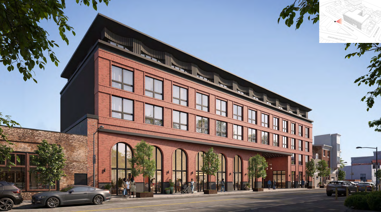 This project has been slowly evolving for the last decade plus. An initial proposal called for 125 hotel rooms and would have combined a new structure with the old industrial building on the site. Though that plan got ZBA approval, it formally went out the window in 2018, when the old building was demoed. A revised plan with 108 rooms had trouble securing financing, per the developers, as lenders worried about the lack of weekday demand or hotel rooms in Fishtown. Now, with the additional reduction in size and scale, the ownership team still seems committed to the hotel vision for the project, but are simultaneously pursuing a mixed-use approach as a back-up plan.