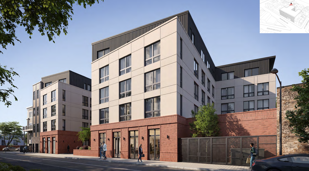 Over the years, we’ve been anticipating a hotel concept for this property. And indeed, at the CDR meeting, the development team presented a plan for a hotel here, sharing plans for a five-story building with 59 rooms over retail. This plan would require a number of variances, which brings us to the heart of what makes this submission rather unusual. Not only did the development team present the hotel concept, but they also presented plans for an mixed-use project with 59 apartments over commercial. The apartment plan would be permitted by right.