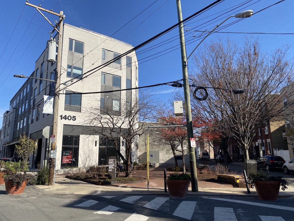 The 1400 block of Frankford Avenue has experienced staggering changes over the last decade, with highlights including the arrival of two large mixed-use buildings and the conversion of an old industrial building into the largest City Fitness location in the city. The City Fitness building was previously home to the Chalmur Bag Co., which is now fulfilling all your polyethylene, cellophane, and polypropylene needs in a new space in North Philly. Next door, a three-story building with nine apartments and ground floor retail replaced a long vacant lot. Across the street, at 1405 Frankford Ave., Penn Treaty Metals moved away and a four-story mixed-use building rose in its place. This project not only eliminated a longtime industrial use on Frankford Avenue, but it also impacted the Fishtown Rose Garden, a small community green space at the corner of Frankford Avenue and Belgrade Street.