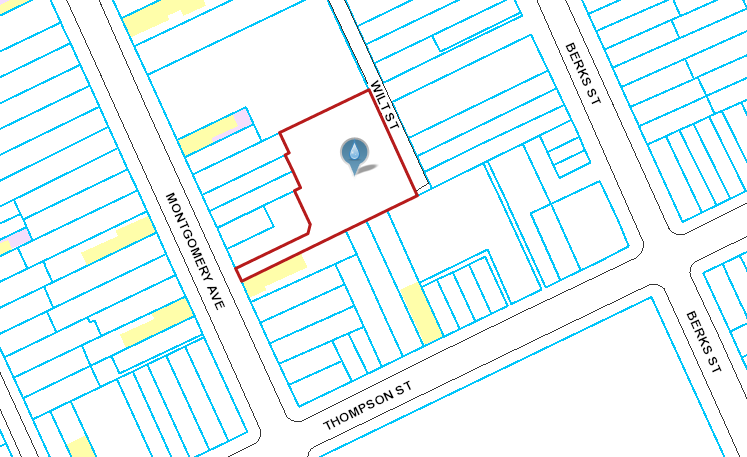 Developers are looking to redevelop a flag lot in Fishtown, off of E. Montgomery Avenue. Perhaps you're wondering, what's a flag lot? Simple, it's a lot that looks like a flag. More specifically, it's a lot that has only a small sliver of street frontage, with the majority of the lot sitting further back from the street, often behind buildings. Here, allow us to show you what we mean: