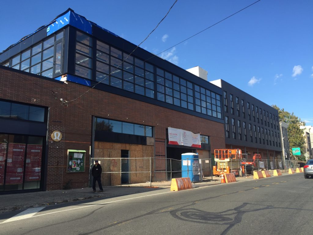 Across the street, a pair of major projects are progressing nicely since we last checked in half a year ago. Next to the former Bicycle Stable, soon to become a Cheu Noodle Bar, a two story City Fitness location looks like it could be pretty close to opening its doors. The three story building next door will have ten apartments and some ground floor retail with huge windows as well.