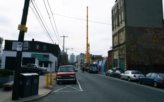 Construction has sped up today at the site of Stephen Starr’s Fishtown “Bier Garten” on Frankford Avenue between Girard and Thompson. Heavy machinery and large–very large, in fact–trees are on site as construction workers tell us they’re working on the much anticipated restaurant’s court yard. Now we don’t know a whole lot about trees in general, but we do know that buying and shipping trees that big can’t be cheap. I guess Mr. Starr’s got a lot in store for his newest baby, but, then again, he’s always big on style. Can’t wait to see this place up and running! —Conrad Benner