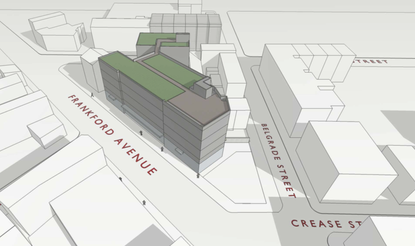 The developers are looking to build a new building with 30 units, 16 parking spots (accessed from Marlborough Street), and retail on Frankford Avenue. Looking at the packet submitted to the Fishtown Neighbors Association, the developers could built 32 units by right and have no obligation to provide parking. Still, a thread on Fishtown.us gives us an indication that at least some neighbors aren't pleased about the proposal.