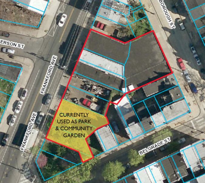 A Fishtown resident shot us an email at the end of last week, giving us the heads up about a new project coming down the pike for Frankford Avenue, and it's a biggie. Developers are looking to consolidate 11 lots into one at 1405-21 Frankford Ave., a project which will consume a community garden space and also eliminate a couple of one-story garages long operated by Penn Treaty Metals.