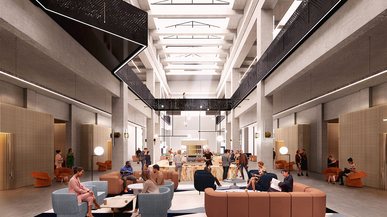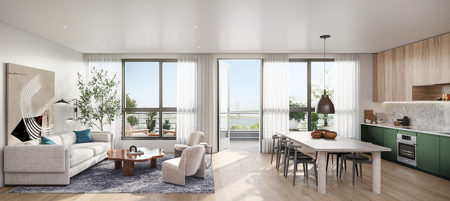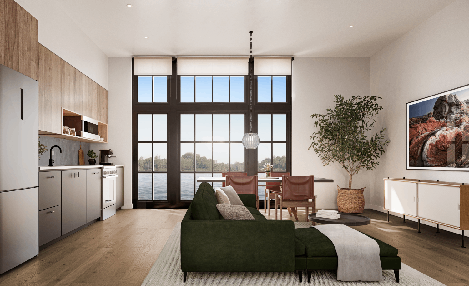 The interior spaces rival the building’s grand exterior, with a complete reimagining of the space. An industrial-modern vibe hearkens back to the building’s past while suiting the needs of today’s lifestyle. The project will include apartments, furnished short-term units, office and co-working space, with all of the bells and whistles you’d expect from a project of this scale. Landscaped outdoor space, a state-of-the-art gym, and an expansive roof deck overlooking the waterfront will provide wellness options that are a driving force for this project. Cohere is handling the branding, so even the tiny details of the development are starting to come to light, as you can see below.