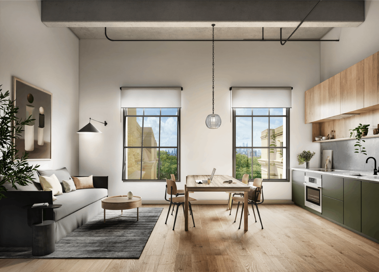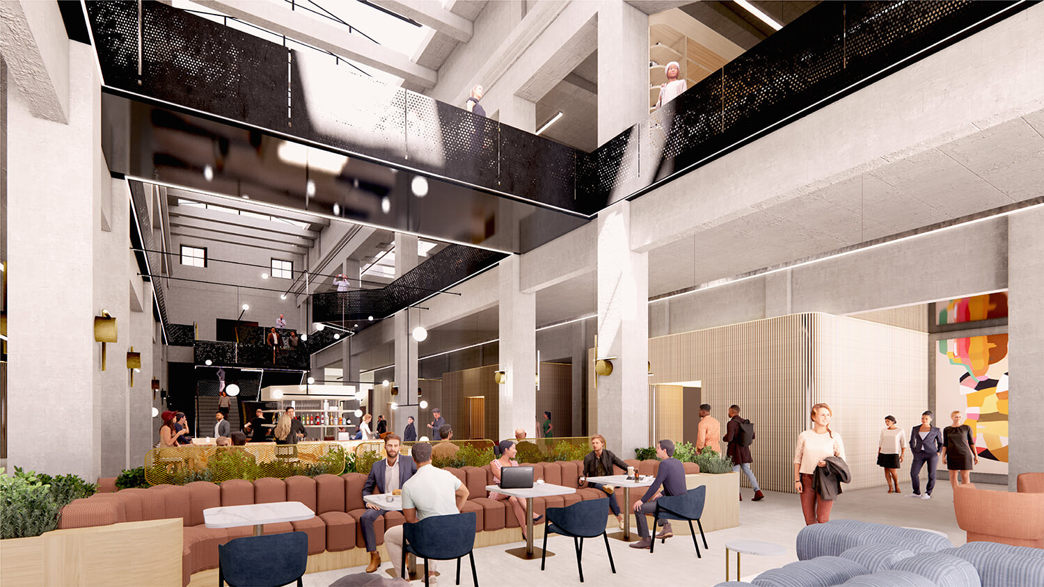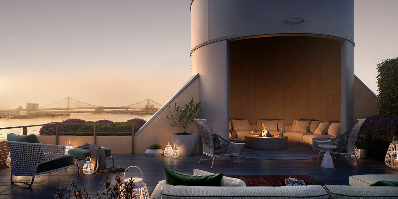 The interior spaces rival the building’s grand exterior, with a complete reimagining of the space. An industrial-modern vibe hearkens back to the building’s past while suiting the needs of today’s lifestyle. The project will include apartments, furnished short-term units, office and co-working space, with all of the bells and whistles you’d expect from a project of this scale. Landscaped outdoor space, a state-of-the-art gym, and an expansive roof deck overlooking the waterfront will provide wellness options that are a driving force for this project. Cohere is handling the branding, so even the tiny details of the development are starting to come to light, as you can see below.