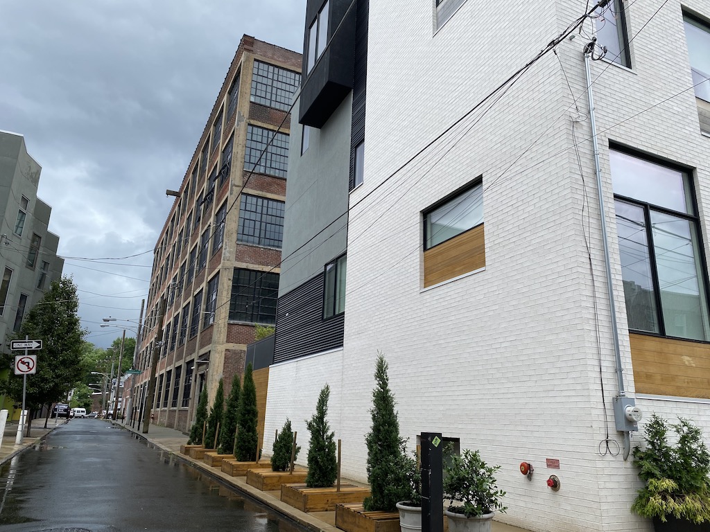 As you may or may not remember, the old factory was sitting vacant and blighted for a number of years until it was converted into apartments a few years back. It’s now called the Chesterman and it looks terrific. Another industrial building which we believe was associated with the mill was slated to become a City Fitness location, but neighborhood parking concerns scuttled that plan, and that’s why there’s a City Fitness a few blocks away on Frankford instead. Instead of a renovation into a gym, the developers built a row of five rather handsome homes here, all of which sold in 2016 in the mid to high $500K range. Surely these homes would sell for more if they were built today.