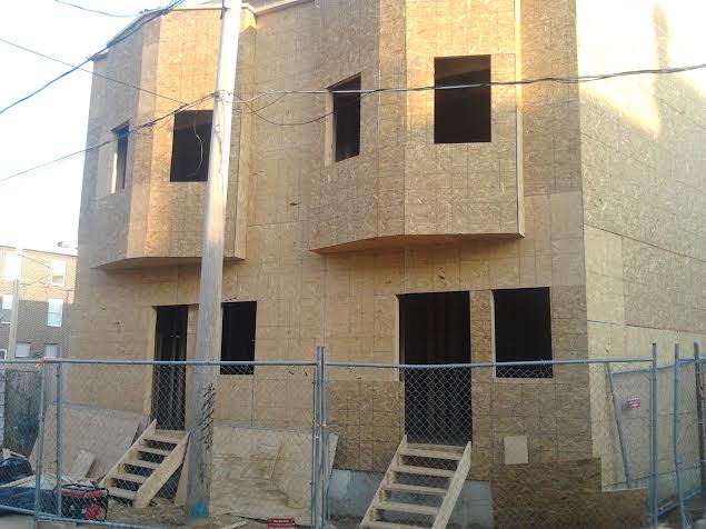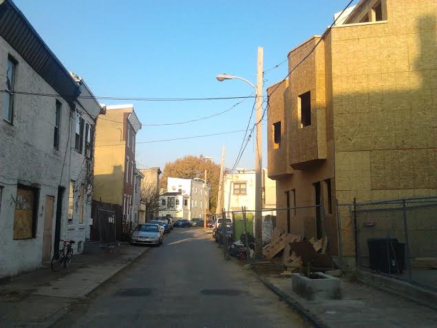 On a little street in Fishtown, two new homes at 2303-05 Collins St. are being constructed as part of yet another one-off development. The two homes had been framed out when we passed by a couple of weeks ago. Previously, the lots where these homes are rising contained a swimming pool.