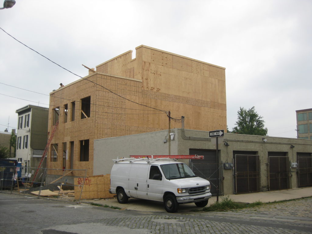 Yesterday, we mentioned Wood Street, one of the few cobblestone streets left in town. Last week, we were traveling down another cobblestone street, Trenton Avenue, and spotted a new construction project on an adjoining block. Currently, two homes have been framed out at 2147 and 2149 E. Sergeant St., formerly a vacant lot.