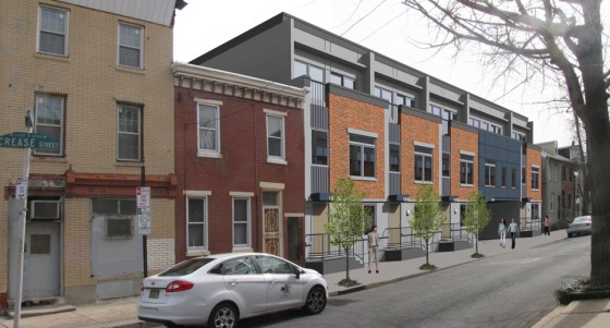 Over the summer, we told you about a proposed seven home development on Crease Street in Fishtown, which was modified from a ten home project that was proposed last spring. We were in the neighborhood the other day and noticed that quite a bit of progress has occurred since we last paid a visit.