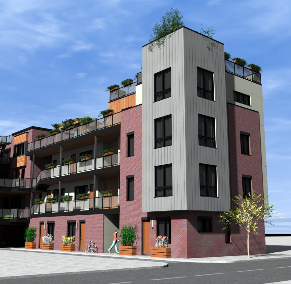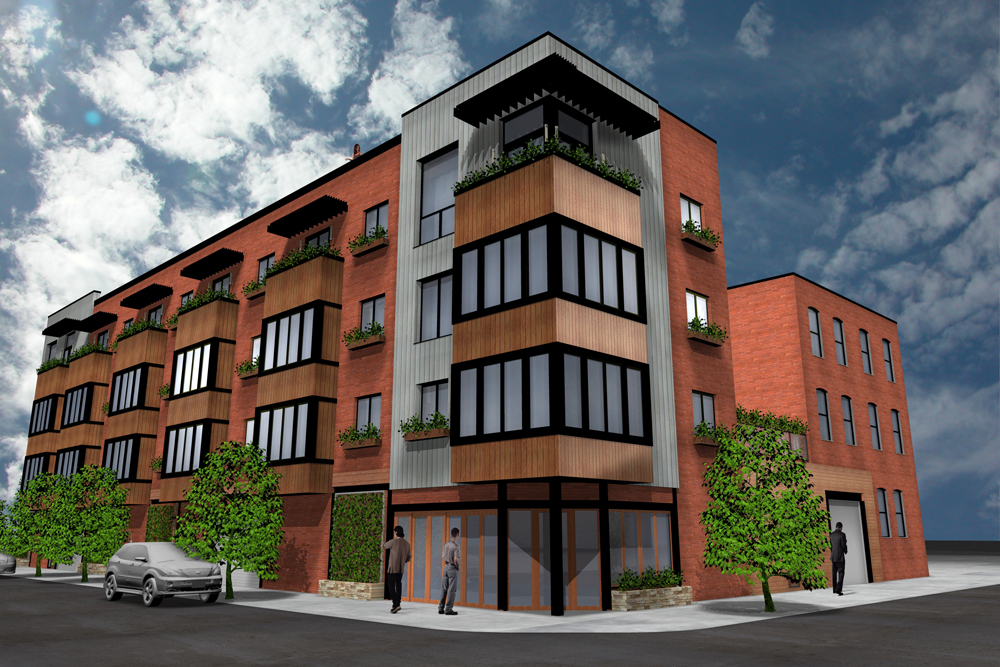 The third phase of the project, which the image above shows has been already been approved, will include thirteen additional condo units as well as a corner commercial space. When all is said and done, it will look like the rendering below, which is a pretty significant upgrade over the now-demolished Dooley’s Icehouse.
