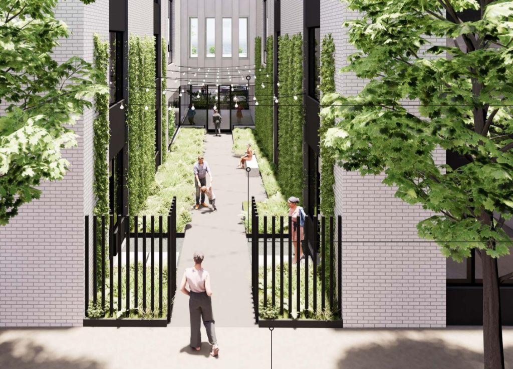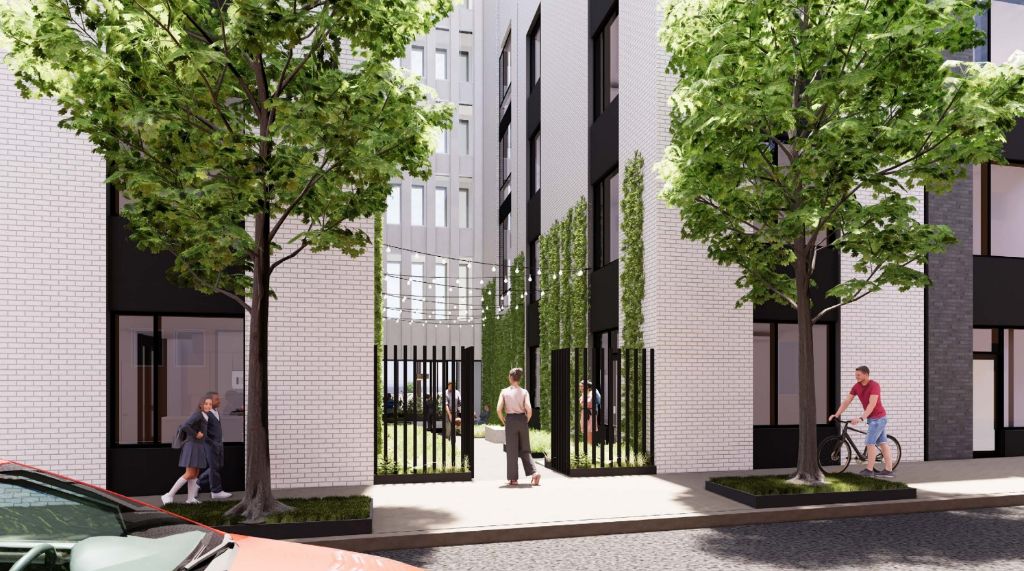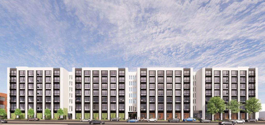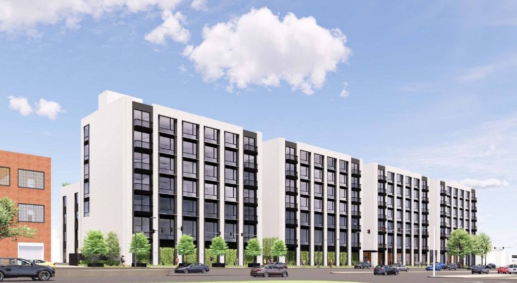This building will almost function as several buildings in one, with the overall massing broken up into four equal parts, along with the additional differentiation between the taller and shorter sections. Let’s check out some renderings to get a better idea of what’s heading our way for this by-right project.