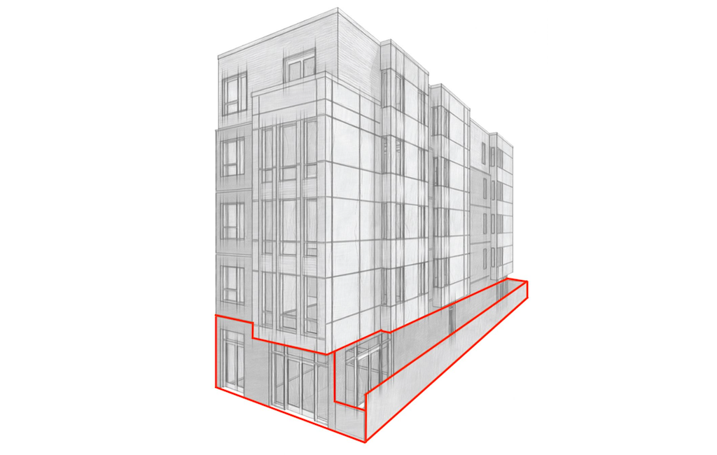 Developers stepped in and bought the two properties, paying a tidy sum of $420K, perhaps in a shoutout to the dispensary down the street. They came up with a plan to consolidate the two lots and build a five-story building with ground floor retail. Given the CMX-2.5 zoning for the property, this parcel could accommodate an apartment building with 11 units by right, or up to 19 units if certain bonuses are utilized. The developers are taking the path less traveled though, and are instead opting for a boutique hotel at this location, with 12 rooms. This project required a zoning variance which was granted, paving the way for the building to move forward. The developers are calling the project the Frankford Collective, and have listed the ground floor and basement retail space for rent, for roughly $6K/month.