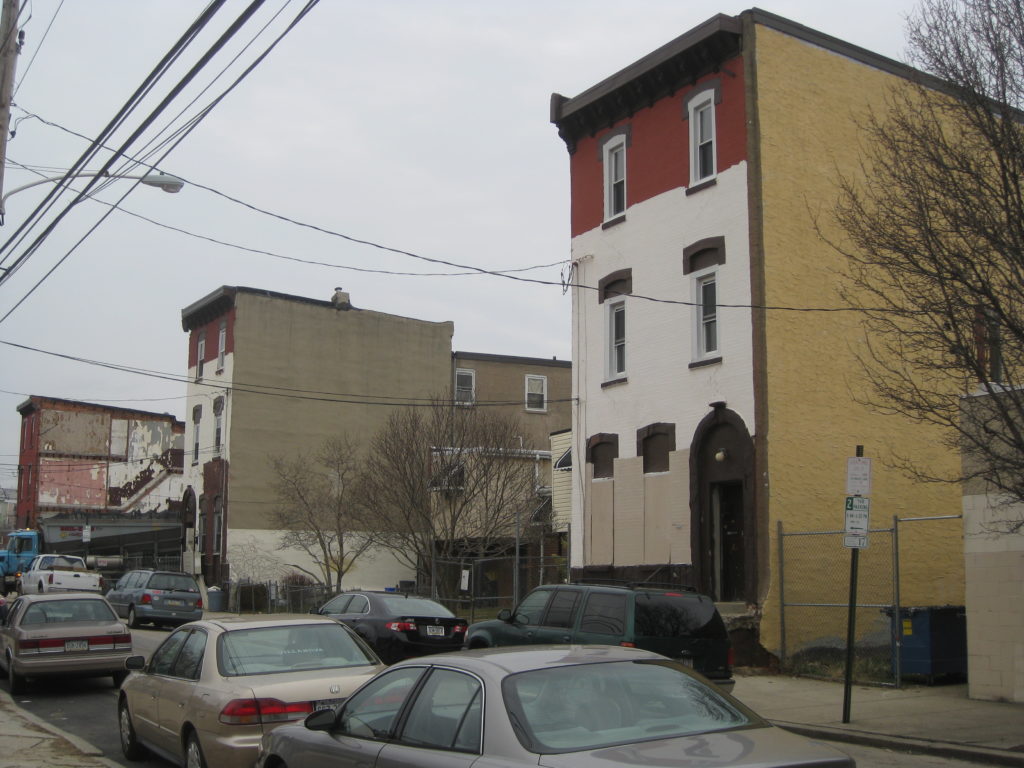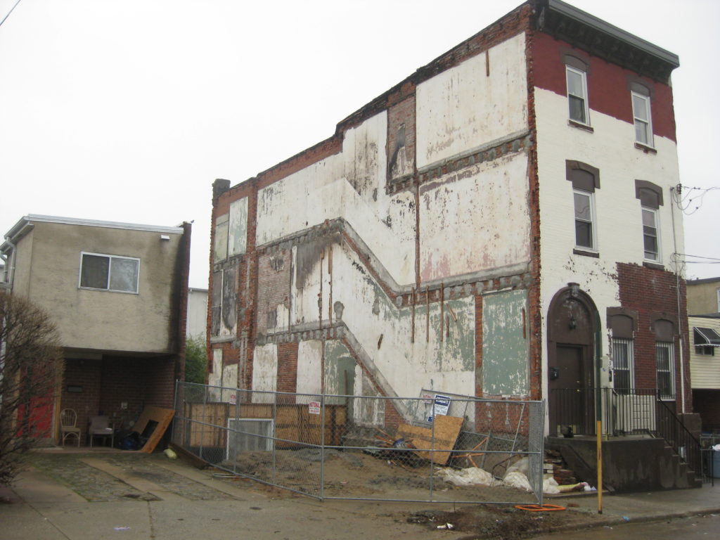 According to the L&I map, two condos with parking in the front are also the plan for the recently demolished and the soon-to-be-demolished homes. Once this happens, there will only be two original homes remaining on this block, with the vast majority being thirty-year-old low-rise homes originally built as affordable housing. All but the remaining two will be set back from the street, with parking in the front, while lone oldies will have no setback. Sure, it’s a jarring look for anyone walking or driving up the block, but we’re at least grateful that two of the original homes on this block remain, to remind us of where we’ve come from and hopefully provide some architectural ideas in the future.