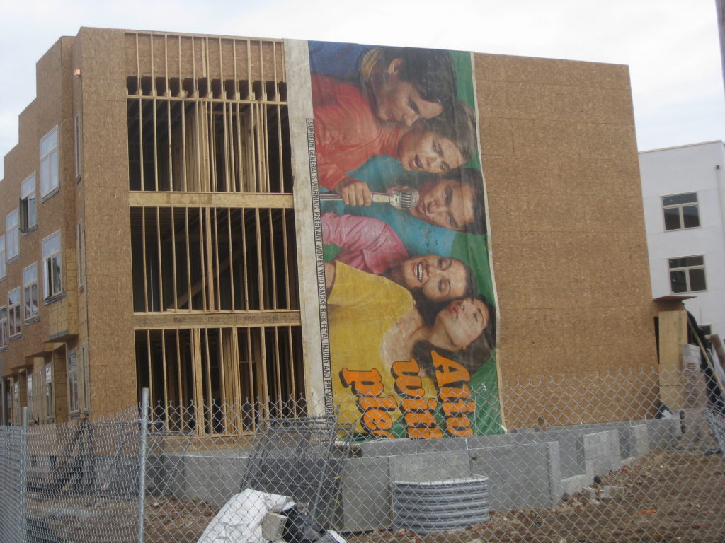 A reader checked in the other day, and gave us the heads up about some unusual sheathing being used on the southernmost house at this moment. We confess, it’s like nothing we’ve ever seen. We’ve heard of adaptive reuse, but this is unprecedented.