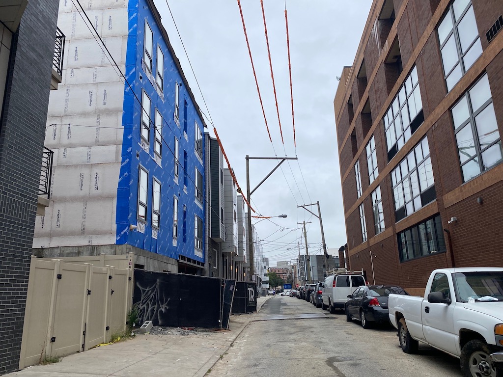 Speaking of the 1600 block of Cambridge Street, let’s take a second to appreciate the fact that nobody would have ever wanted to associate a project with this block even half a dozen years ago. Back then, half of the north side of the street was home to Saint Joseph’s Hospital while the other half of the north side and the entire south side were covered with surface parking lots. As you can see in the photo above, the south side has been completely redeveloped aside from the building currently under construction, and contains a mix of duplexes and triplexes. The hospital was converted to apartments in the last couple years, and there are plans for a second building on the rest of the parking lot in the near future. So we can certainly appreciate why the developers would want to take advantage of the Cambridge Street address, as it makes far more sense today than it did quite recently.