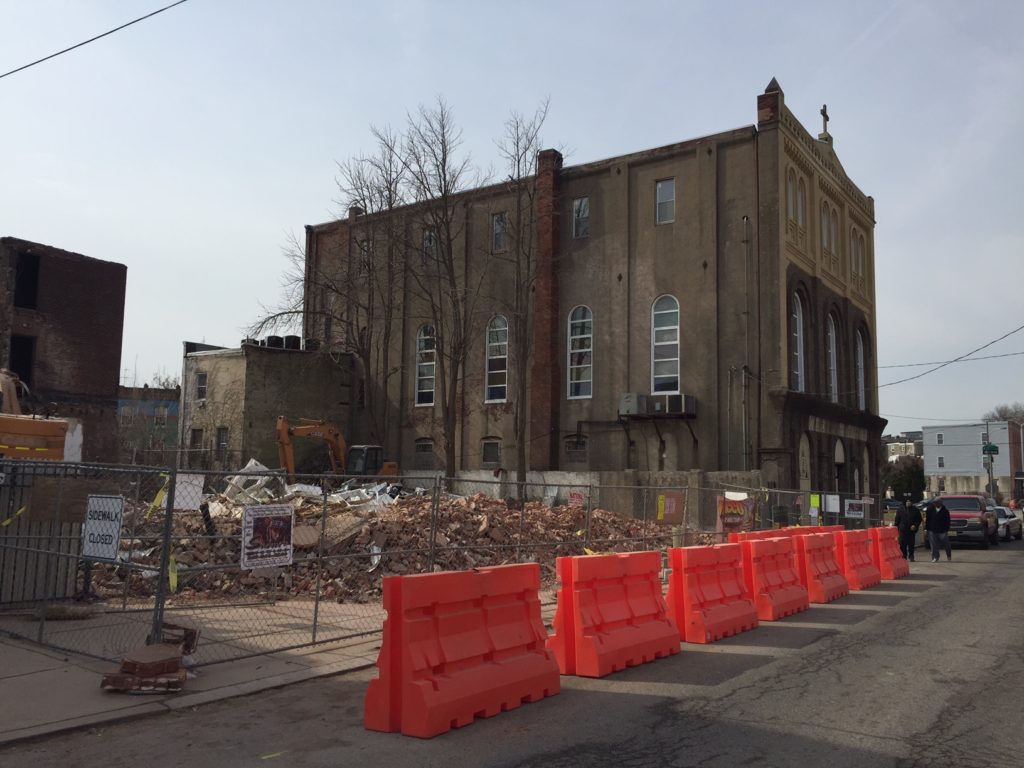 A reader tipped us off recently that they noticed some demolition activity on the south side of the 1600 block of Poplar Street, but it seems that the demo contractors moved pretty quickly and were mostly finished their work by the time we were able to pay a visit. In the past, there was a rather wide building standing at 1624 Poplar St. which we imagine was at one point affiliated with the adjacent Church of the Living God. The cross above the door seems like a pretty good indication, at least.