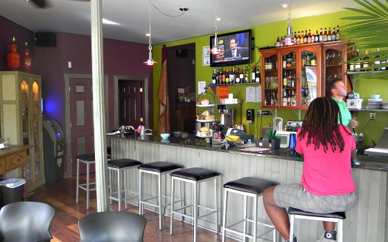 Two months ago The Flying Carpet Café and Bar, a new dig with a Mediterranean twist, opened at 1841 Poplar Street, the site that was once home to New Janie’s Lounge before it closed due to unpaid taxes. On a bright afternoon its calm vibe and green and purple walls could make you feel like you’re in a breezy beach café in some coastal town, not just one block from Girard Avenue. Owner Kevin Young says his eclectic menu caters to palettes colored by the flavors of the world. “The neighborhood desperately needed a friendly meeting spot that represented the diversity of the neighborhood,” says Young, an eight-year Francisville resident and the founder of Urban Realty Works. URW bought, designed and renovated the first-floor bar (the second floor remains vacant) during a slow three-year construction process. Because city records incorrectly list the building as three separate buildings, instead of one complete structure, Young was forced to leap new hurdles each time he went for another permit. Now clear of setbacks, Young and his staff serve up everything from vegan falafel sandwichs, to roast beef with horseradish and cheese, to tapas and Baklava seven days a week. “Our philosophy is for neighborhood transformation there needs to be a neutral place to meet,” says Young.