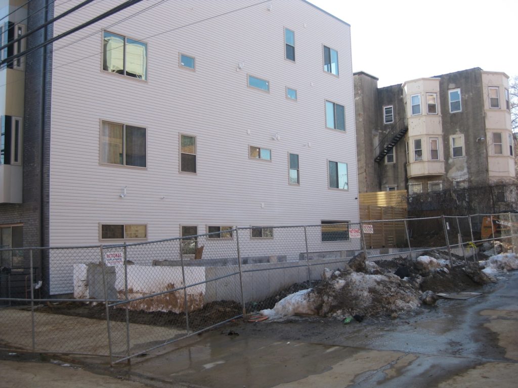 There are a couple of interesting things to point out about this property. First, you'll notice the building next door has windows that will be directly facing the new duplex. We're guessing there's an alleyway in between the two properties which makes the windows possible for the building that's already there. Still, it might be a little awkward to have windows for the two buildings that are so close to each other.