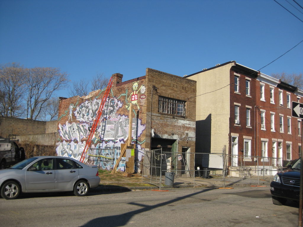 You can see, there are some new foundations next door. This is actually a different developer, but they're taking a similar approach. Immediately next door at 1819-21 Wylie St., a six-unit building will soon rise, though we wonder why the developer isn't going for the two extra units like MJL did. At the corner, the lot is a little smaller, so they're "only" building a single family home. So if you're doing the math, at some point in the future, this little stretch will have gone from a garage and four vacant lots to fifteen new residences. Kind of microcosm for all of Francisville if you ask us.