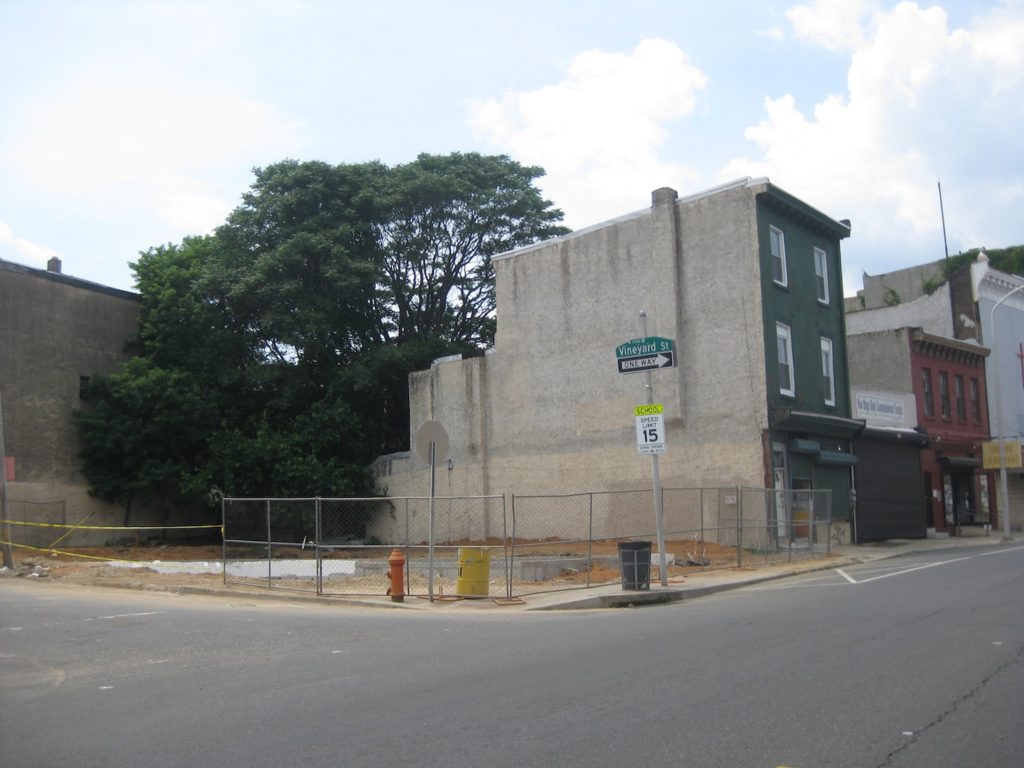 1724 Ridge Ave., at the corner of Vineyard Street, has been vacant for years, though relatively well tended. For the last couple of years though, it's been surrounded by a chain-link fence. Finally, in the last month or two, a foundation has appeared. According to the L&I Map, the large lot will soon contain a new four story mixed-use building with three apartments on the upper floors and a commercial space downstairs. And that commercial space will apparently be home to a restaurant, if we're to believe the permits. Has anyone in the area heard anything about such a thing?
