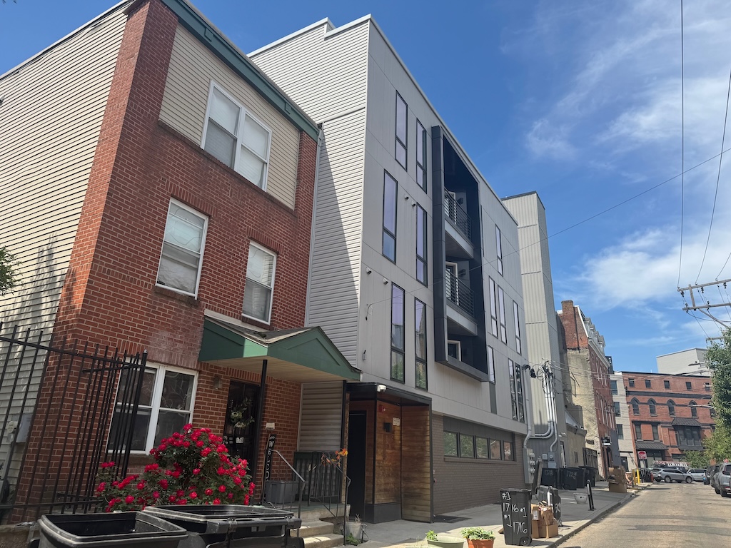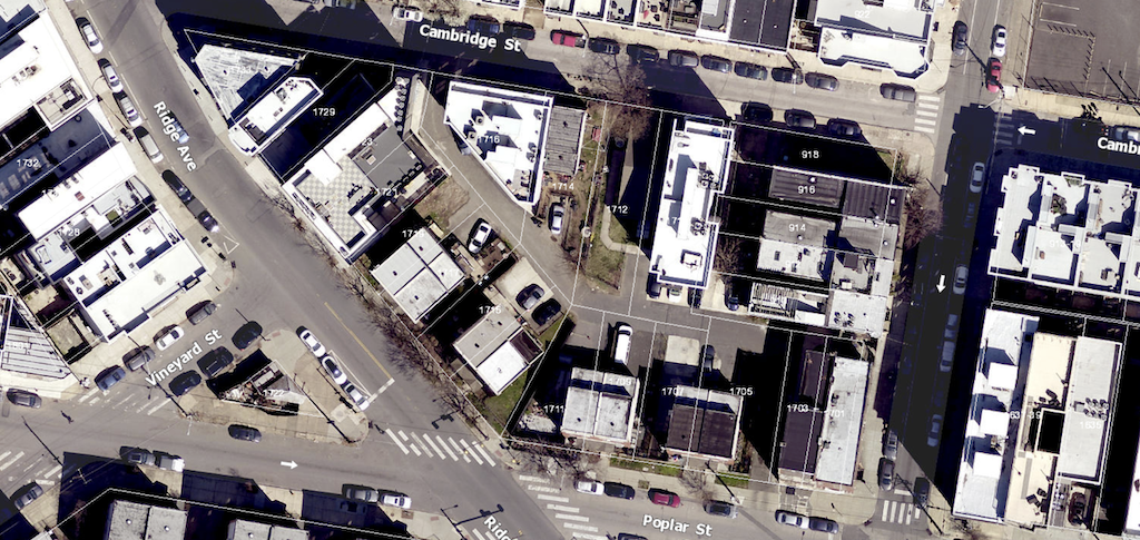 As we’ve seen many times in this neighborhood in the last few years, this little area has undergone some significant changes. In 2018, we told you that two homes had been demoed on the 1700 block of Cambridge, with plans for an 8-unit building at 1710 Cambridge St. and a 5-unit building a few doors down. A couple years later, we told you that 1721 and 1723 Ridge Ave. had been demoed, with a mixed-use building with 14 units planned in their place. Those buildings are all complete and occupied, leaving us with only nine out of the original twelve twins still standing.