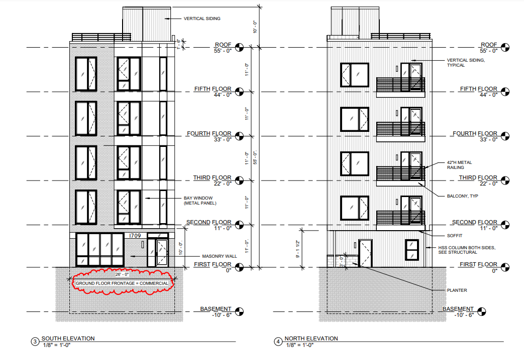 This project will take advantage of permissive zoning to produce a five-story building with a bit of density to replace a single-family home. While the commercial aspect might seem a little curious, it’s required by the property’s zoning and its elimination would require a variance, which developers are understandably eager to avoid. Though the address is on Poplar Street, the property sits steps off of Ridge Avenue, so the inclusion of a commercial space is reasonable to us, and should only add to the energy on the Ridge Avenue corridor.
