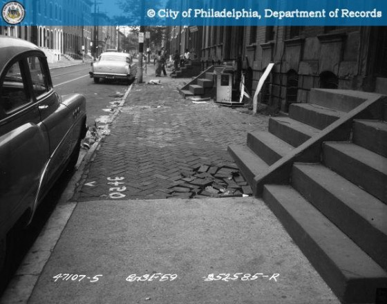 The rest of the homes on the block, like 731 N 20th St., are set back from the street, with parking in front of the houses. We’re not totally sure, but we believe that this entire block was demolished by PHA in the 1980’s and rebuilt as affordable homeownership properties. Looking at a photo of this block from 1959, it’s clear that all of the homes on this street were classic Philly row homes once upon a time.