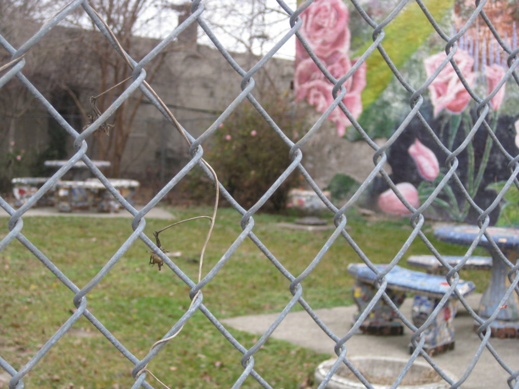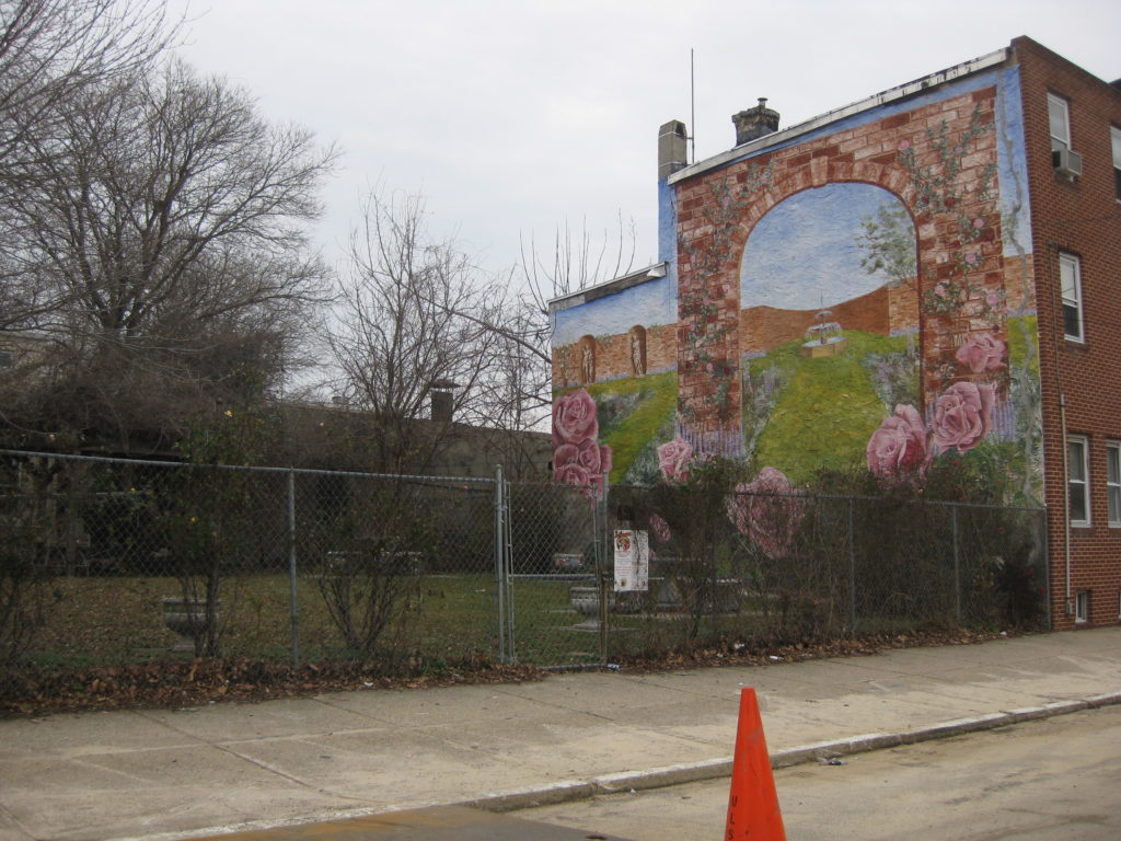 You’ve probably never heard of Winding Roses Park, even if you live in Francisville, where it’s located. According to a Daily News article, the park was established in the 1990s and used by neighbors to celebrate happy occasions or to gather to mourn loved ones lost. Its use has declined dramatically in recent years, but it remains a well kept lot on the 1900 block of Brown Street, with a chain-link fence, an attractive mural, a pergola, and several permanent tables.