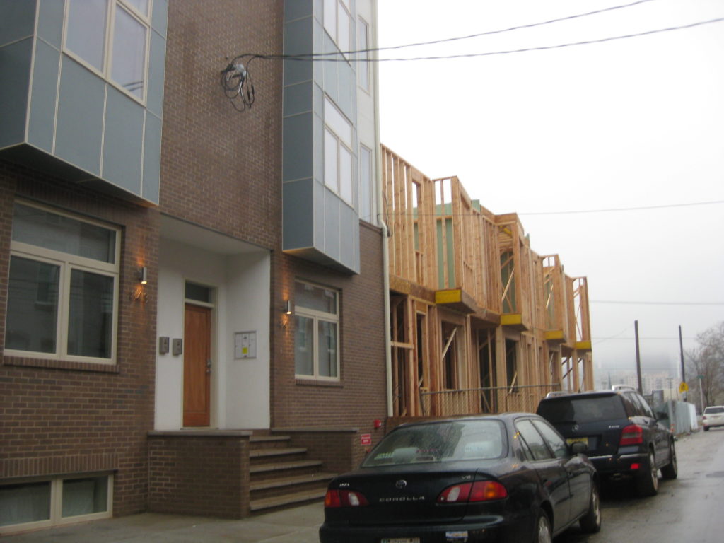 It’s been a few months since we last checked in at 19th & Poplar, on the giant 35-unit project we first told you about over the summer. At that time, demolition was taking place on the site. In September, there was framing taking place. Today, the project looks to be about half complete from the outside, and it seems as though the second phase of construction has begun.