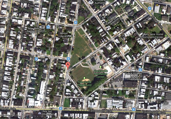 The lot is located across the street from the Francisville recreation center and its outdoor courts and fields. It runs along 19th Street between Parrish and just beyond Brown. Blessed with an odd shape, the lot opens up interesting possibilities for a creative developer. No idea whether that applies to the Hankin Group.
