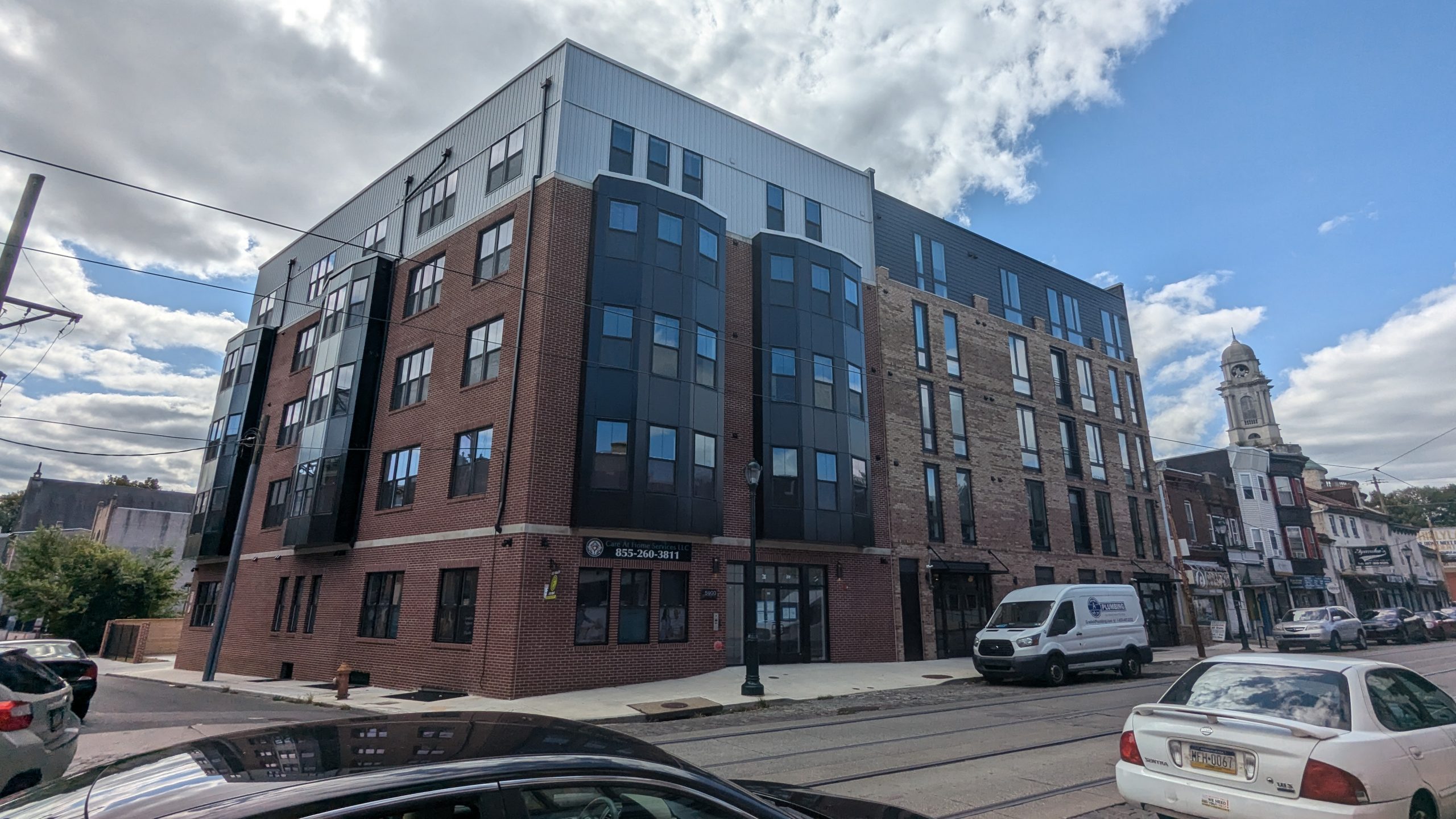 Replacing a worn out and unremarkable single-story commercial building along Germantown Avenue and a rear parking lot, a five story building will have 75 apartments above two commercial spaces and 38 ground level parking spaces. The high number of 2 bedroom units (21) and relative dearth of studios (10) was noted by Vice-Chair Dan Garofalo as unusually family friendly.