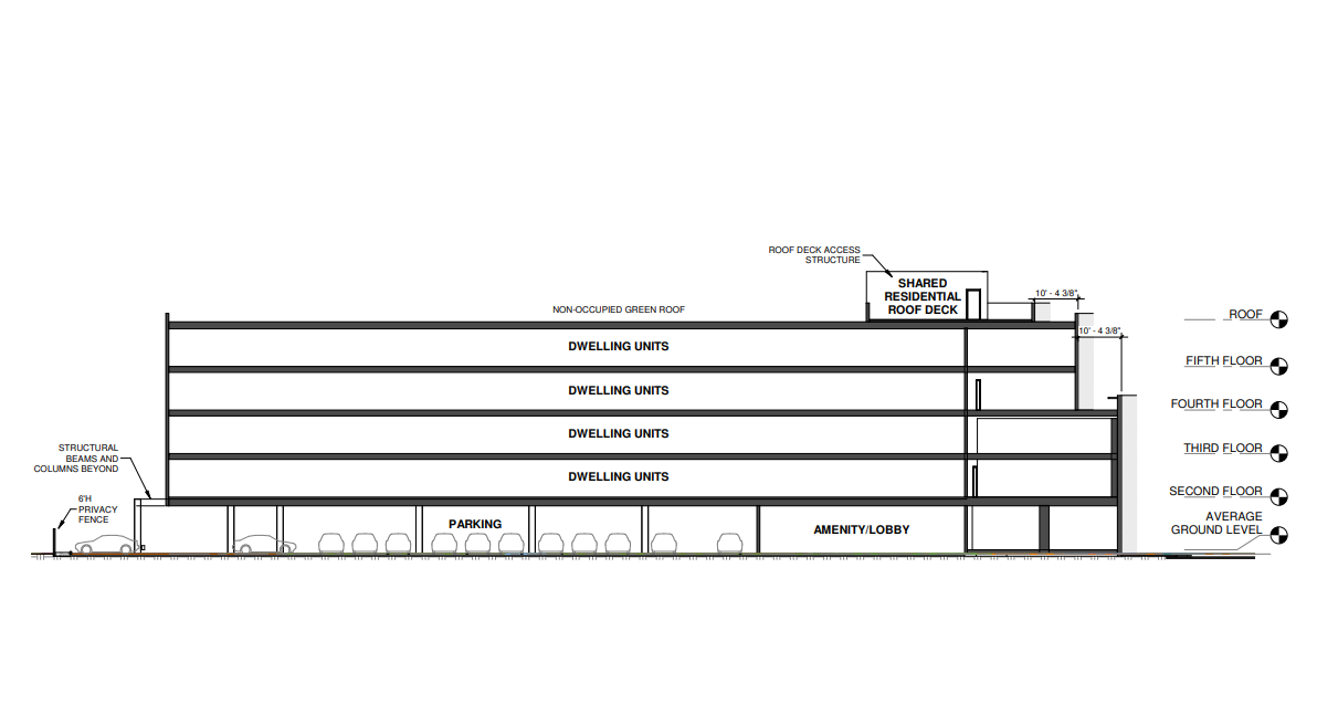 Ground level parking will be accessible via an alleyway on the south side of the parcel, which both planning staff and CDR members had concerns about. While several suggestions were made to hopefully make walking along the side of the building safer and more pleasant, the attorney for the project responded that the alleyway isn’t owned by the developer, which limits their ability to implement improvements.