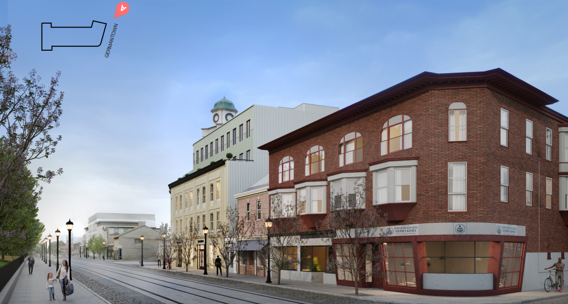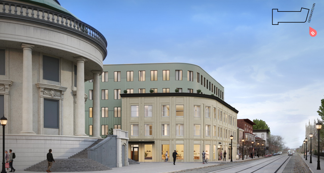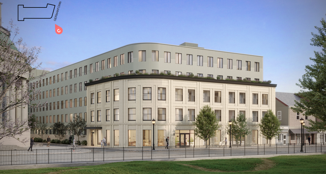 Germantown is a walkable neighborhood with access to parks, shops, and restaurants without all the hustle and bustle of Center City, so it’s not surprising we’ve been seeing residential projects pop up here recently. At this week’s Civic Design Review meeting we got a chance to learn a little bit more about a proposed mixed-use building at 5932 Germantown Ave. in the heart of this neighborhood, adjacent to Germantown Town Hall and across the street from the old high school.
