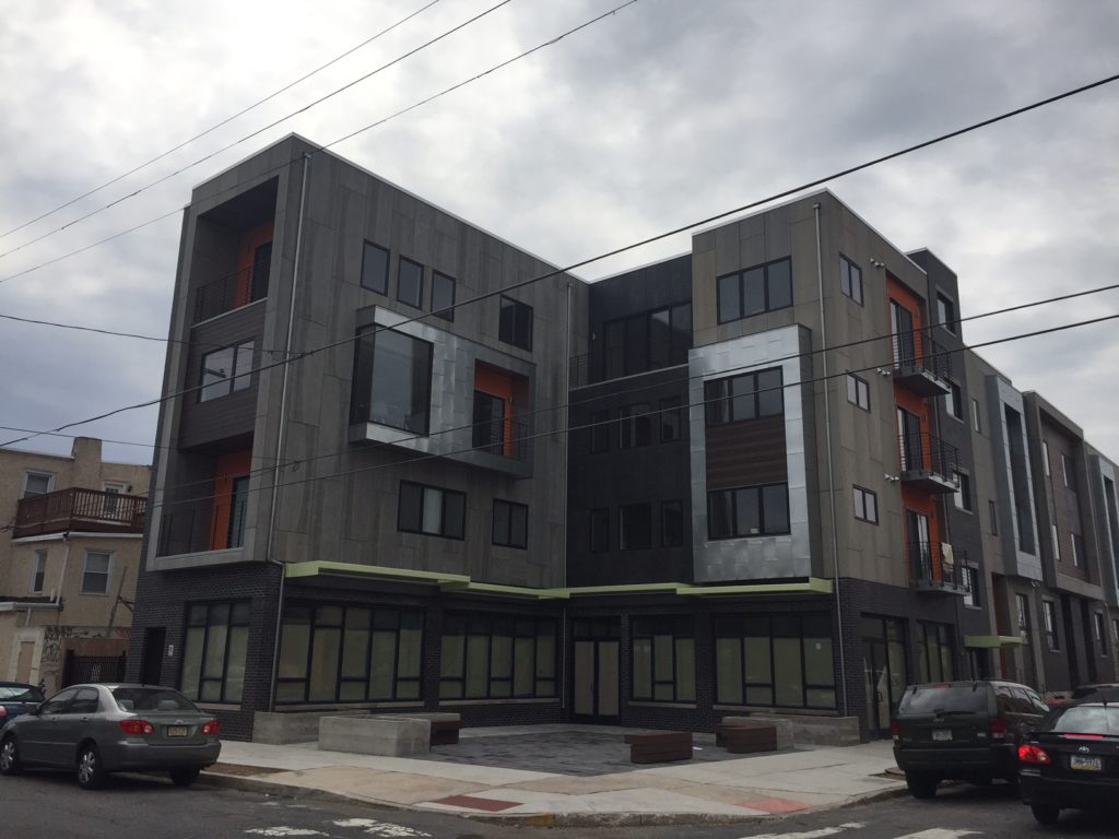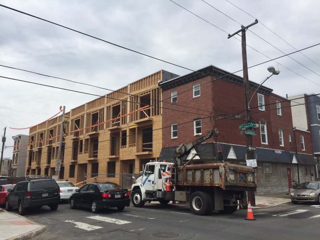 So we were understandably excited back in 2011 when plans for Carpenter Square first surfaced and we learned that the eastern side of this block would be fully developed. We've tracked the construction of this project over the years, through two phases of residential construction and finally a mixed-use building at the corner of 17th & Carpenter. That building, and the courtyard in front of it, now look to be ready for action and word has it that a couple of businesses are currently in the mix for the space.