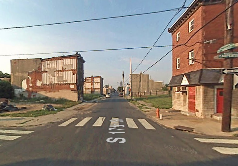So yeah, that's pretty terrible. This block had exactly two occupied buildings, four vacant and blighted structures, and a whole mess of vacant land. Within a year or two, the vacant buildings got demoed, which made the block much less creepy but added to the number of vacant lots on the block.