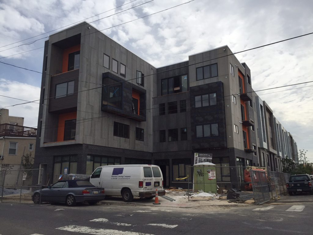 Speaking of Goldenberg, catty corner to the future park at 17th & Carpenter, we see good progress on the mixed-use building that caps off Carpenter Square. A year ago, when we last visited, the building was framed out in steel to just one story. It's not finished just yet, but you get a good idea of what's coming. And don't forget, there will be a retail space on the first floor and a little public space right at the corner, too. It's really amazing to consider that in just a couple of years, these two corners will have been totally transformed from blighting vacant lots to vibrant assets for the neighborhood.