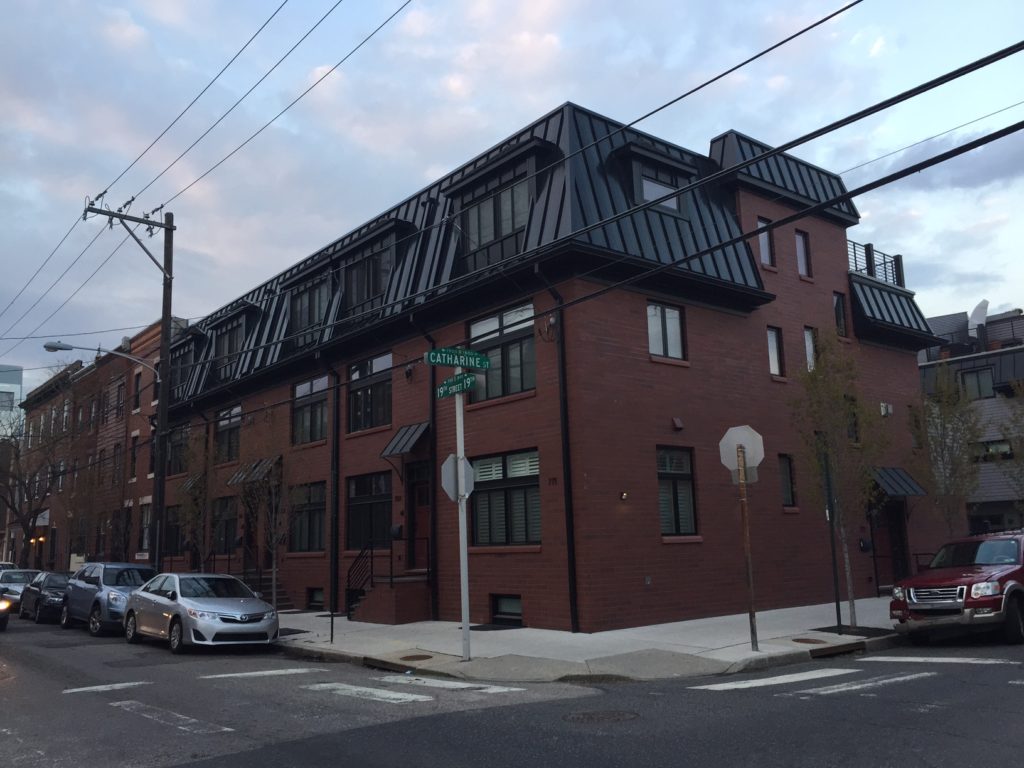 We've covered many changes at the intersection of 19th & Catharine over the years, as we've watched two churches get torn down, with homes rising in their place. Our most recent visit to this corner was over a year ago when new owners took over a long vacant building on the northwest corner. This property has been vacant for many years, but got a new facade a couple of years ago. Also, in the back of the property, we seem to recall an ice cream shop once upon a time, but there's been no business operating there for some time.