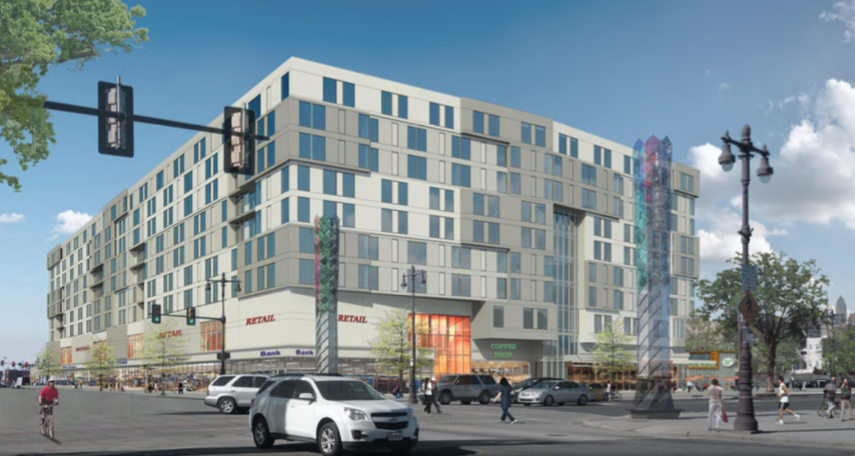 We hit a bit of a lull in terms of interesting projects going to Civic Design Review at one point earlier this year, but recent agendas have produced a goldmine of information for upcoming major projects. Thanks to CDR, in recent days we've passed along renderings for the Edward Corner renovation and the new building coming along with it as well as some updated renderings for the project at 2501 Washington. Today we return to the CDR well to provide an update on Lincoln Square, the major mixed-use project coming to the long vacant northwest corner of Broad & Washington.