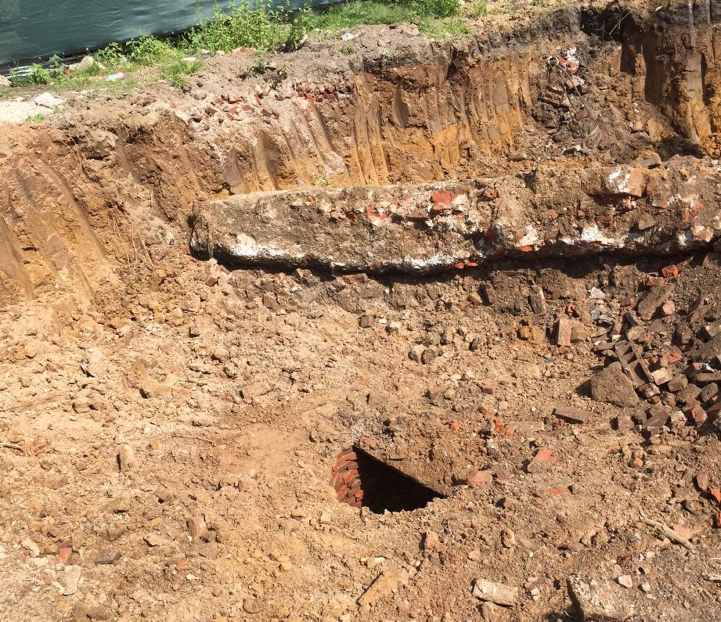 According to the developer, this hole goes down about fifty feet. It's an old cistern, and apparently similar cisterns are scattered all over town. This thing was apparently dug to help with stormwater management, something we still contend with today. A hundred years ago, water flowed into cisterns and when it reached the bottom where the bricks are laid without mortar, it was absorbed into the ground at a depth that didn't threaten surrounding buildings. A pretty cool thing to find on a construction site, and we can only be thankful that nobody accidentally fell into the hole before it was discovered.